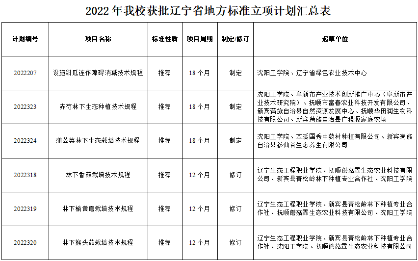 近日,辽宁省市场监督管理局发布《关于印发2022年辽宁省地方标准立项计划的通知》,我校生命工程学院获批立项“赤芍林下生态种植技术规程”“蒲公英林下生态栽培技术规程”等6个项目。该项工作完成后,将促进我省山区农产品标准化体系的完善,充分发挥标准化对社会资源的整合与引导作用,更好地服务我省经济社会发展。